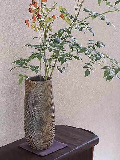 彫刻的な優しい流紋は、季節の枝や花たちをひきたててくれます。